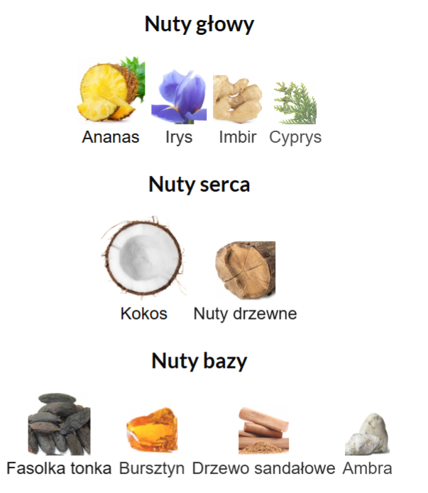 W sercu kompozycji wyczuwalne są balsamiczne niuanse i delikatna owocowa miękkość, które nadają zapachowi przyjemnie zmysłowy charakter. Całość dopełniają bogate nuty drzewne oraz subtelny aromat ambry, tworząc elegancką i trwałą bazę.